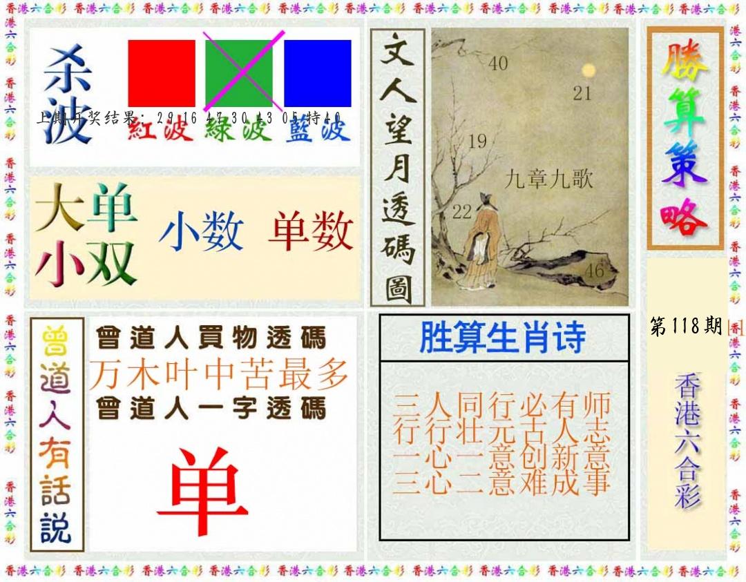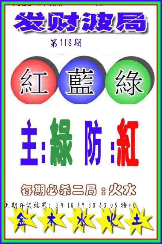 | 118期:波色 | 蓝波+绿波 |