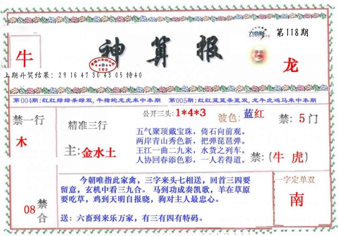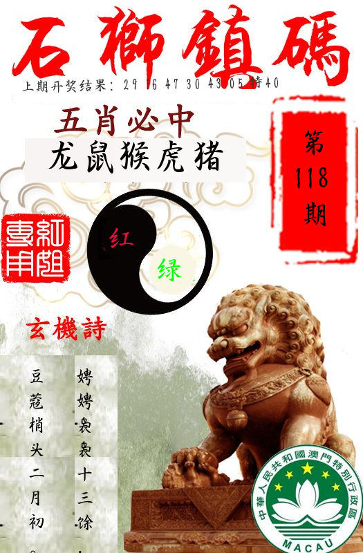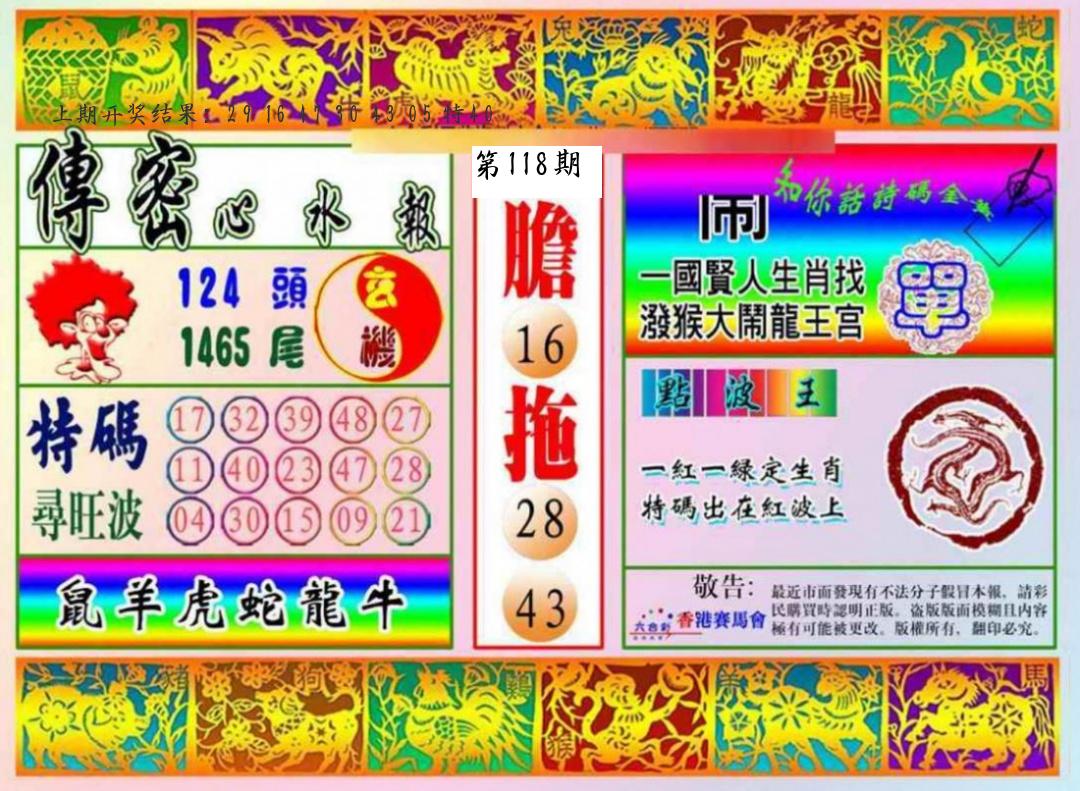 | 118期 | 狗鼠牛兔虎马猴 | ????? |