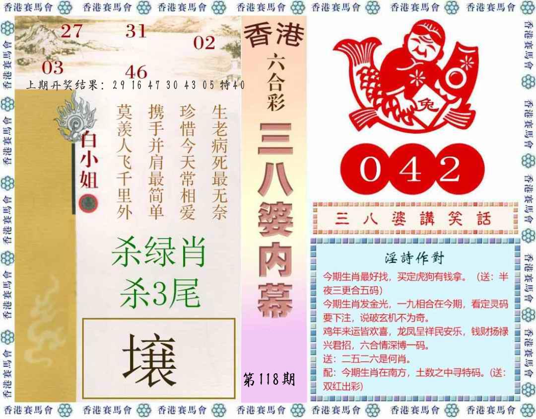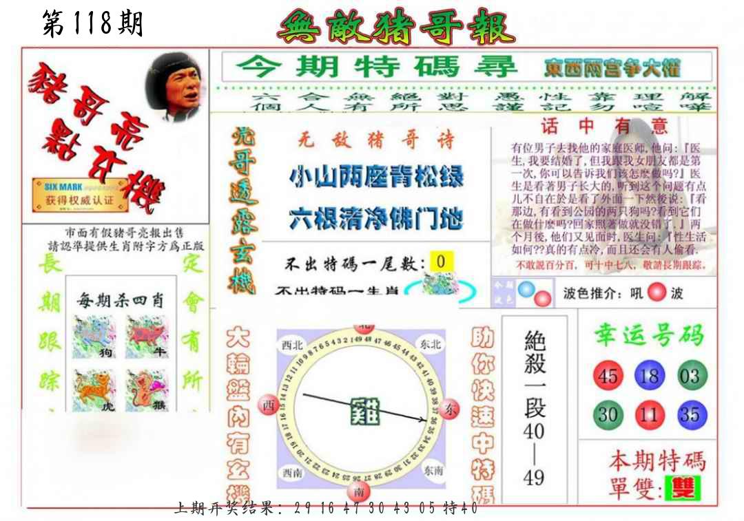 | 118期:五肖 |