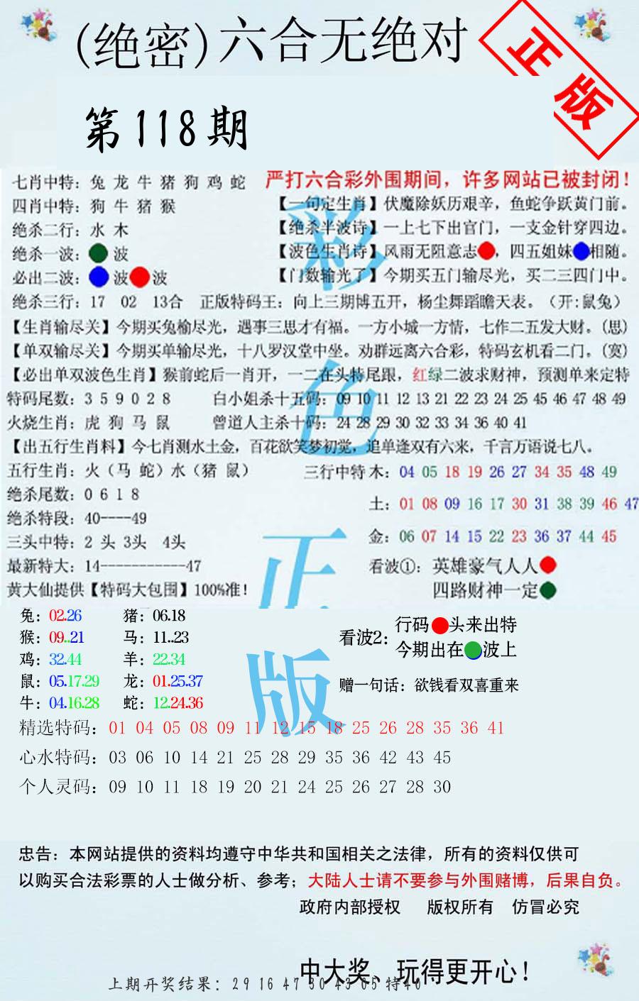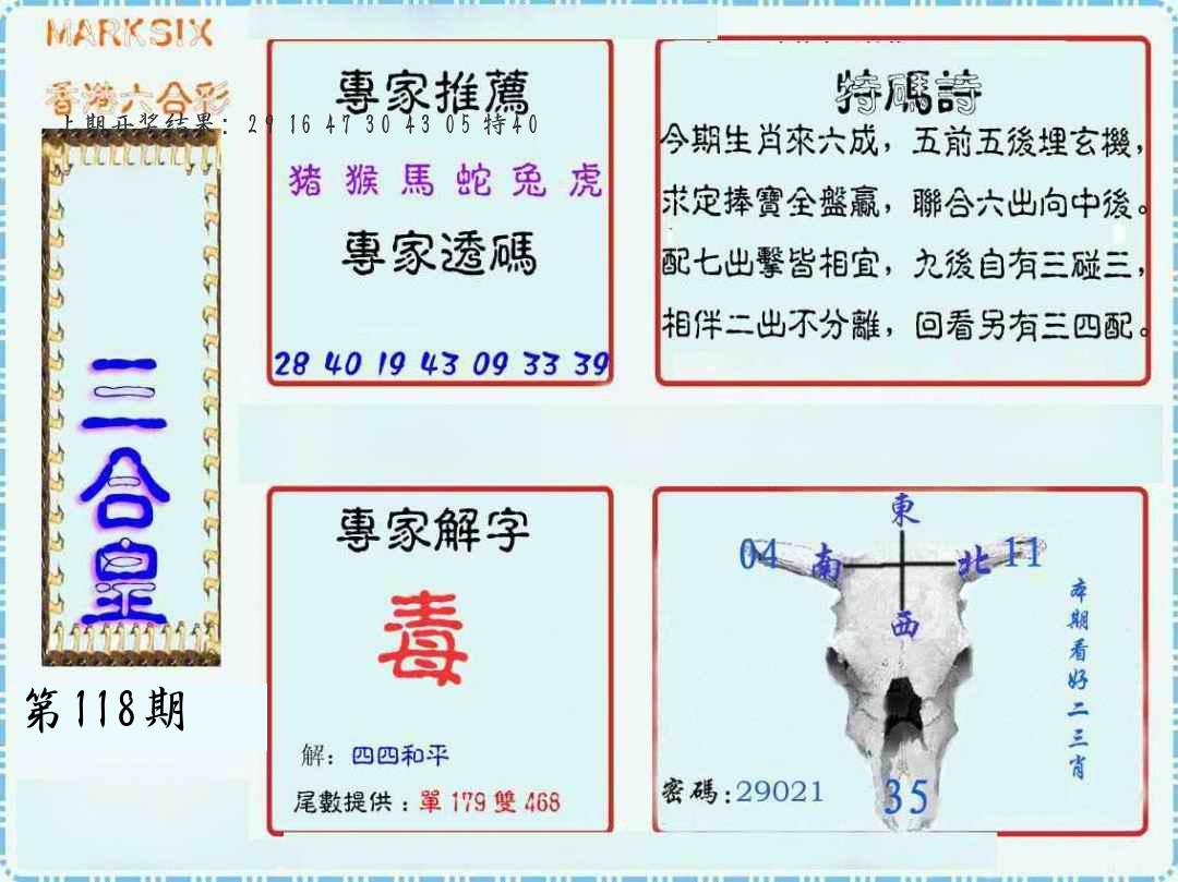 | 118期:二肖 |