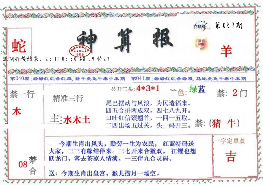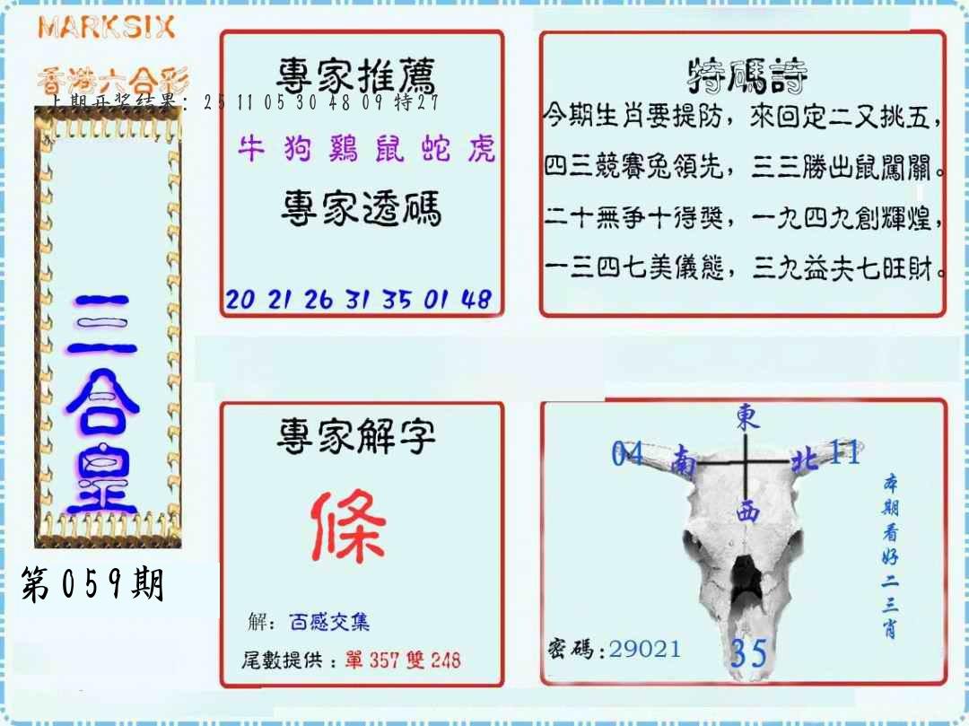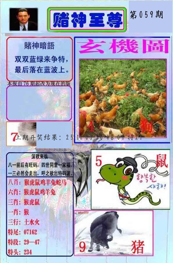 | 059期 | 虎牛猴龙鸡羊狗 | ????? |